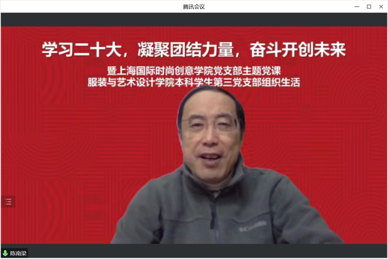 12月29日,校党委常委、副校长陈南梁参加时尚创意学院党支部、服装与艺术设计学院本科学生第三党支部“学习二十大,凝聚团结力量,奋斗开创未来”主题党日活动。JKF 捷克论坛 党委书记吴晶、联合学院党委书记林文伟出席,时尚创意学院党支部及JKF 捷克论坛 本科学生第三党支部全体党员参加。