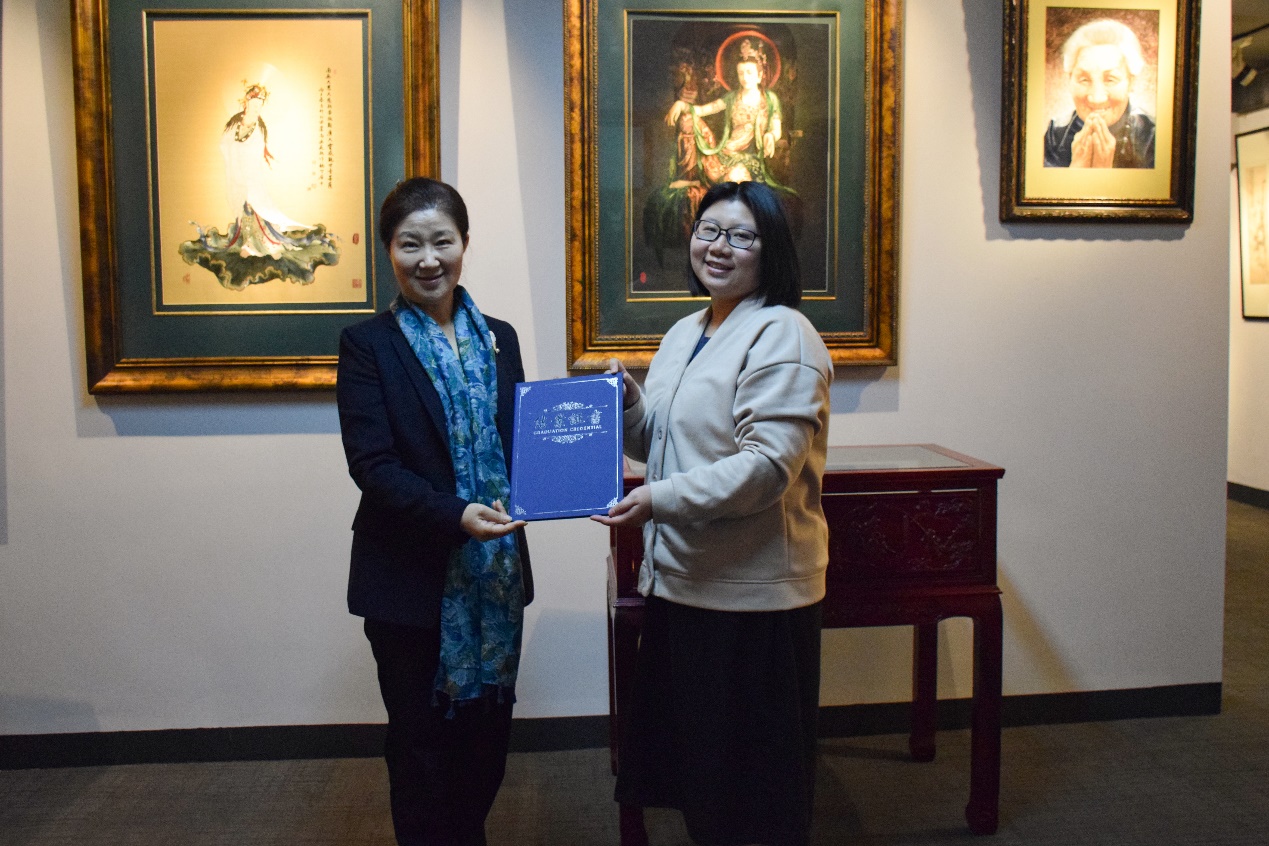 图4 柯玲老师向陈华琼颁发结业证书