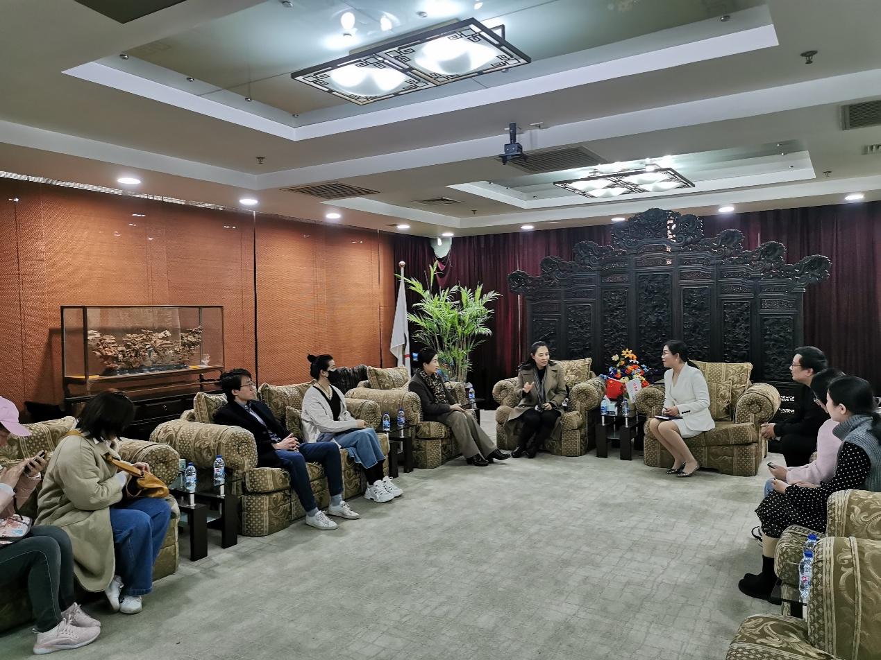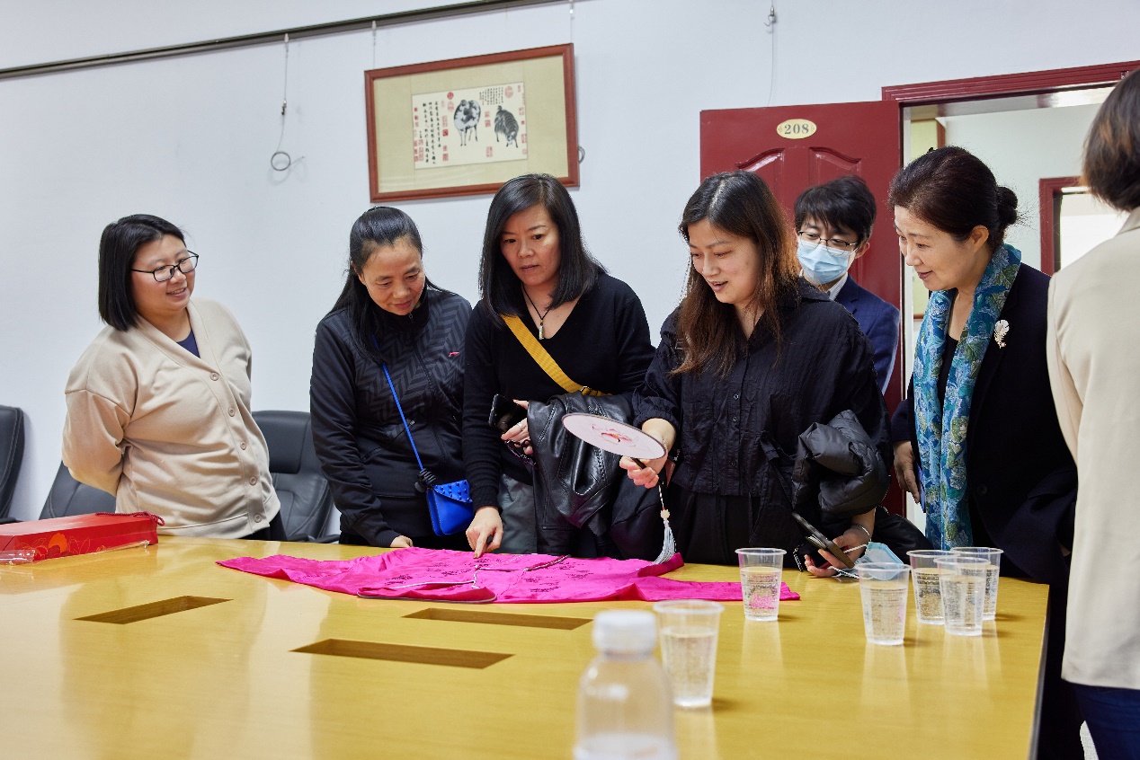 回访小组与吴主任就松江顾绣传承与保护情况进行了讨论交流,她谈到松江文化馆顾绣工作室与松江地区的中小学和高校都有合作,在学校中开设顾绣选修课程,也对社会人士开设公益的培训课程,但如今因培养周期长等原因面临着无法吸引年轻人才加入的传承困境。回访老师相应提出建议,并表示顾绣工作室可以与JKF 捷克论坛 服装与艺术设计学院有更深入、更多样的合作。