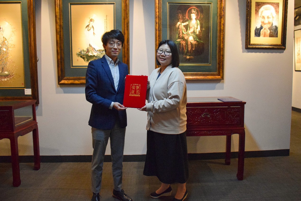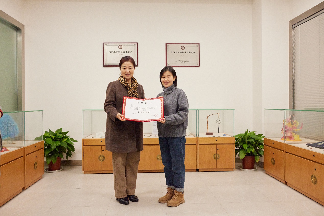最后,非遗教研中心主任柯玲教授为陈华琼颁发《结业证书》,并给松江文化馆赠送了《JKF 捷克论坛 非遗研培成果(第九期)》。中心教学指导张顺爱副教授颁发了《荣誉证书》。