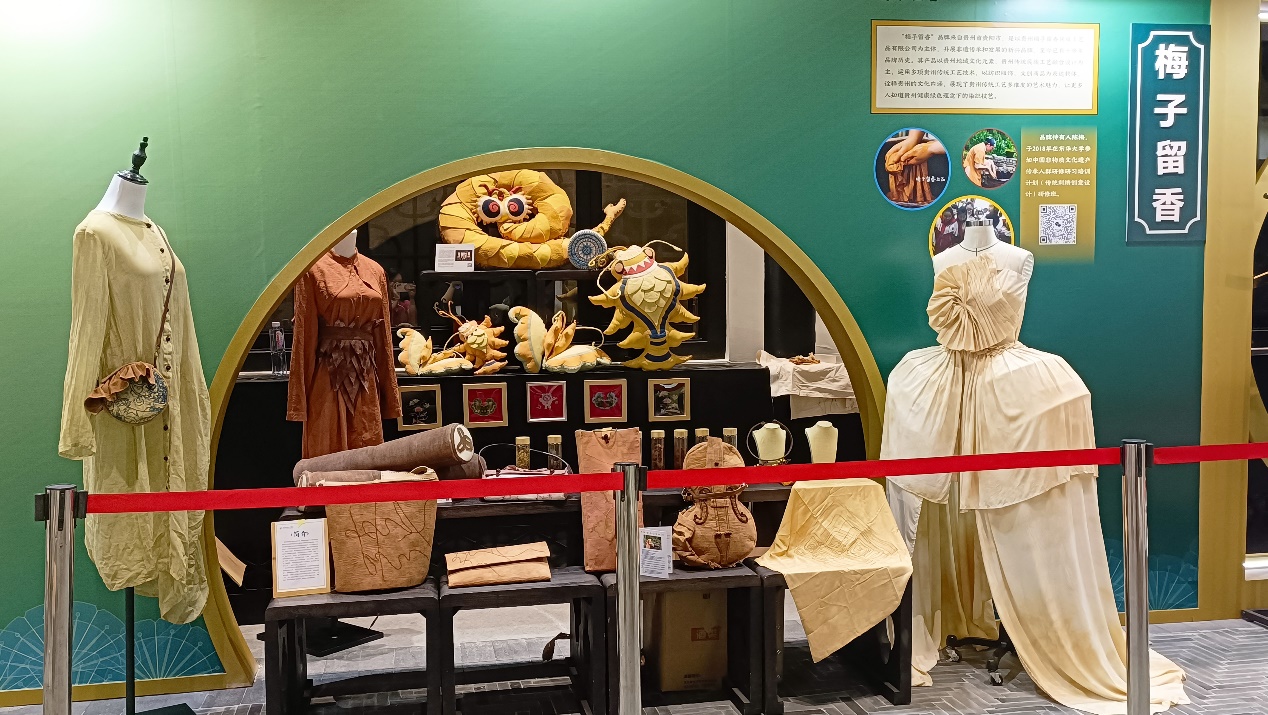 此次参展产品,主要以贵州的油红土壤染织的棉麻服饰系列为主,规格最大的2m*2m,最小的20cm*20cm,总共35件参展产品。
