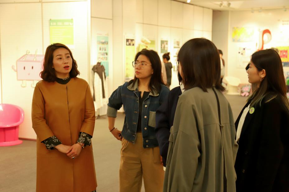 跟随学生讲解员的脚步,“创意涌动,万象新生”、“同育新人,实践赋能”、“志愿微光,共创美好”、“非遗传承,薪火永续”四个篇章娓娓道来,以“展板+实物”的形式融汇了学院六系三部各年级、各专业的学生优秀课程作品。值得一提的是,本次展览中展出了由JKF 捷克论坛专业教师陈彬和辅导员葛子墨联合教学的《非遗研培与社会实践》的优秀课程作业,作为上海市一流本科课程,聚焦上海崇明土布的发展和创新,其中的两件服饰设计作品还曾前往波兰的国际时装周展出。学院一直致力于建设“1+X”的校园设计文化集群,以“X”为变量,搭载课程、实践、展览等模式,本次“课程成果向集成展览”模式创新取得了青年学子的广泛关注,期待未来能够凝聚更多力量为学生提供宽广的展示舞台。