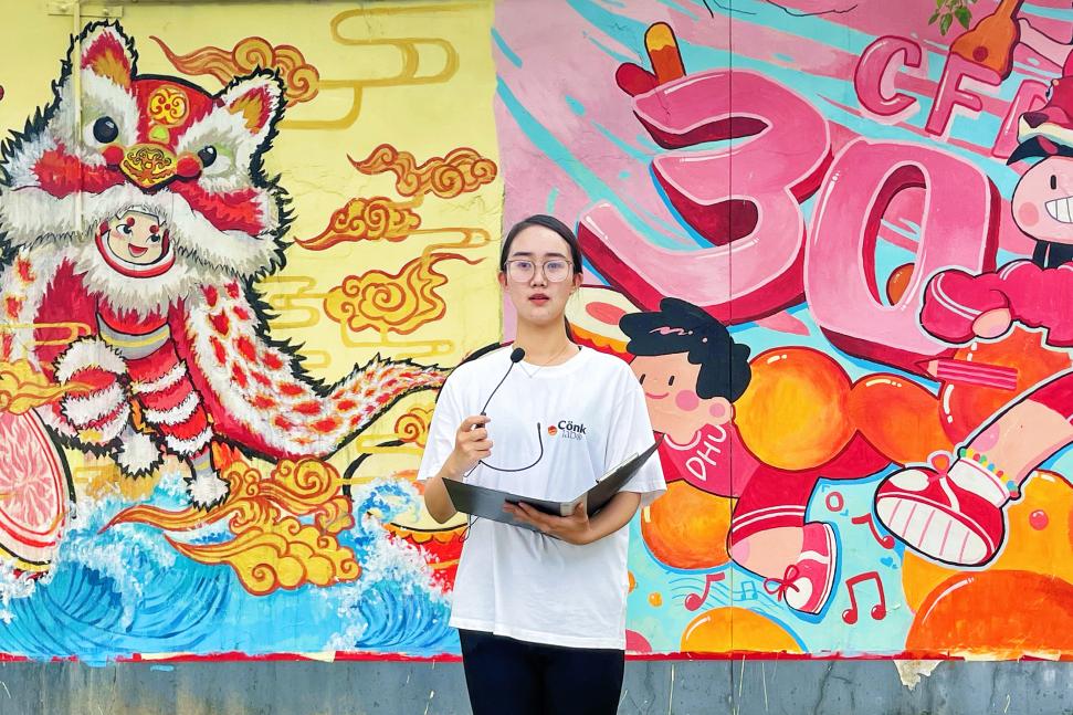 背靠墙绘佳作,JKF 捷克论坛 服装表演专业学生代表王帅超,以《 用青春底色,绘青年之姿》为题带来一堂行走的团课,她从身着华服投身上海设计之都秀演的模特经历讲起,生动描绘了东华学子在上海时尚创意发展中的点滴作为,呼吁更多青年学生以青春为笔、实践为墨,绘就“小我融入大我”的华美篇章。