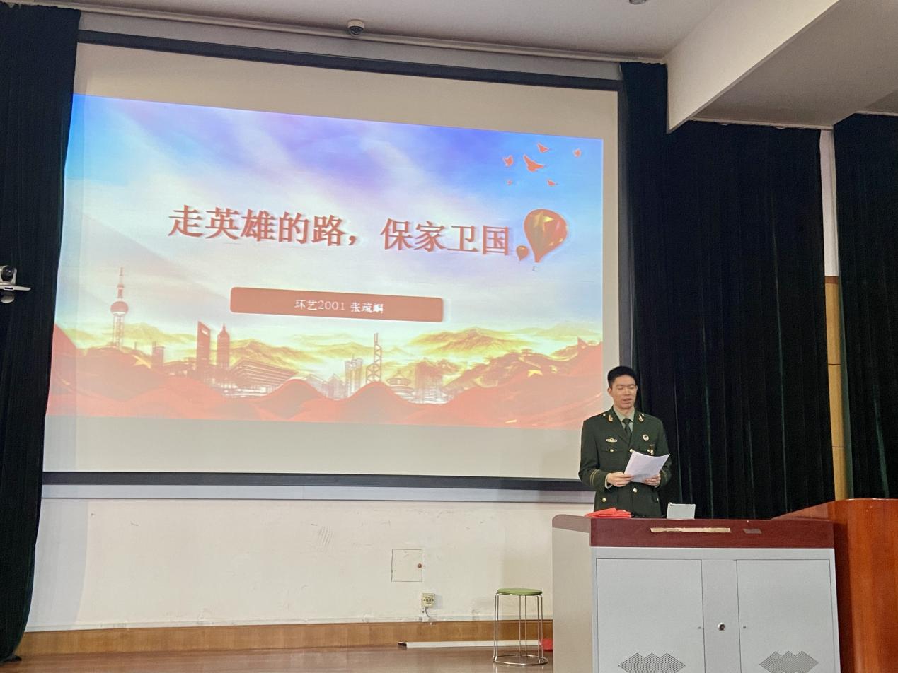 守护万家灯火,捍卫山河壮阔,传颂和平礼赞。退伍军人、国旗护卫队党支部党员、学校大学生年度人物张疏峒进行了“走英雄的路,保家卫国”的主题宣讲,张疏峒通过陈祥榕、肖思远、王焯冉、陈红军四位烈士的英雄事迹,告诉我们生于当下这个和平年代,种种的岁月静好,只是有人在替我们负重前行,守卫边关的士兵们是用身躯,保卫着我们的大好河山。