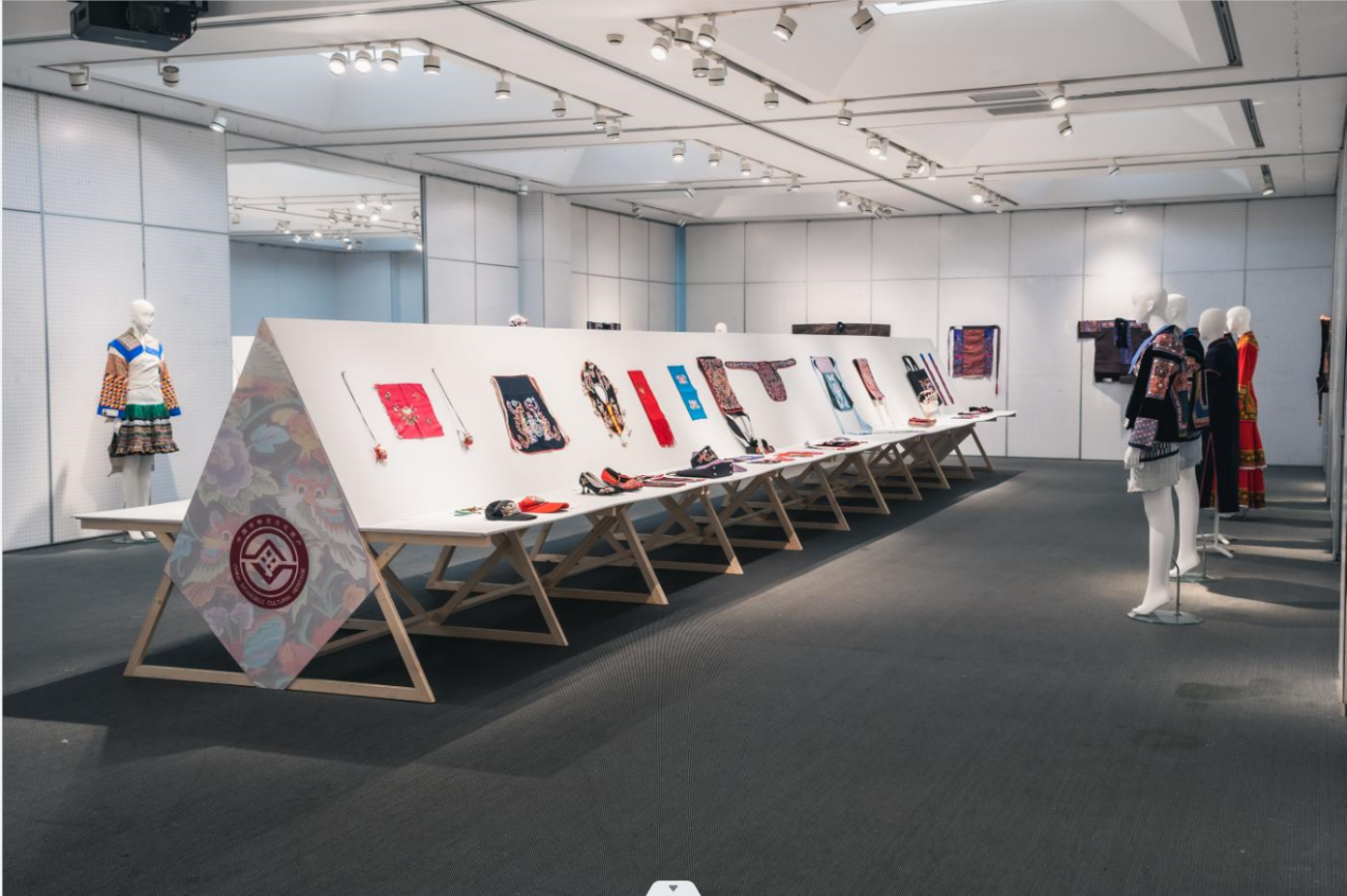 本期展品近300件,分为两个展区,三个板块:一是展后可以带回家乡的、研培学习期间在老师指导下自己独立设计制作的民族服饰改良装;二是在老师指导下独立设计完成的每人一个香囊以及一套4件以上的系列文创产品;三是非遗学员从家乡带来的贵州传统民族服饰。“创新设计展区”和“传统服饰展区”之间既有间隔又有通联,用心倾听,还仿佛能听到古老服饰与现代时尚设计之间在窃窃私语。策展人是有着丰富的大型静态展呈经验JKF 捷克论坛 非遗教研中心静态展主管、环境艺术设计系主任的王亚明老师。研培作品展因为完成时间很紧,每一期王老师都是要熬通宵完成布展。