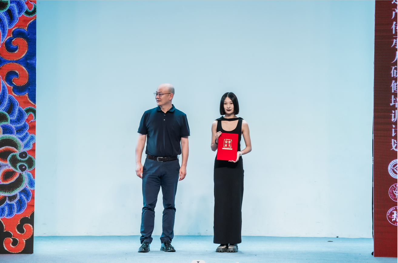 作为结业典礼的一部分,颁发证书再次掀起秀演现场小高潮。本期非遗研培除了给非遗学员颁发结业证、优秀学员证外,增设了一些单项奖,也给所有参与结对设计的中外年轻大学生颁发了结对设计证书。