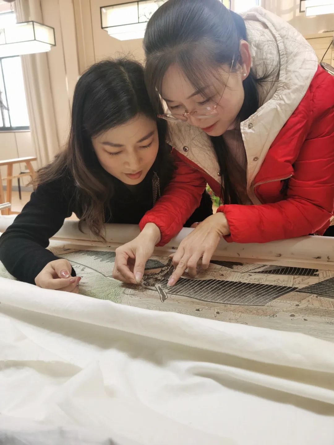 图5:郭华和她进行中的《千里江山图》