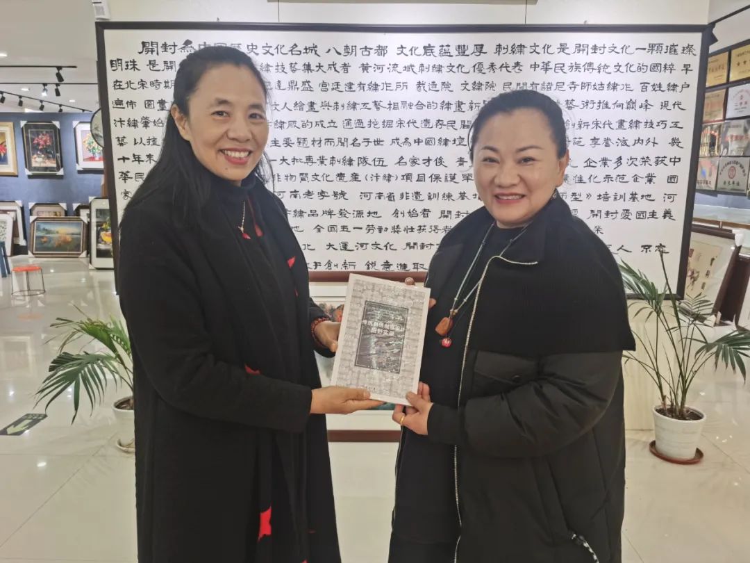 回访中,东华非遗教研中心的施晓黎老师从视觉传达的专业视角出发对汴绣厂的拥挤和逼仄深表惋惜。在王若玉的国脉馆看到国脉学生设计绣制的非遗文创作品赞赏有加,对个别瑕疵也直截了当提出了修改建议。而在即将离豫当日清早,国脉馆的董事长李翔先生又再次与柯玲主任详谈近两小时,交流非遗教材的编印出版及校企合作办学等事宜。柯玲教授结合自己丰富的文化类教材编写经验对教材建设本身提出了中肯的建议及温馨提醒。