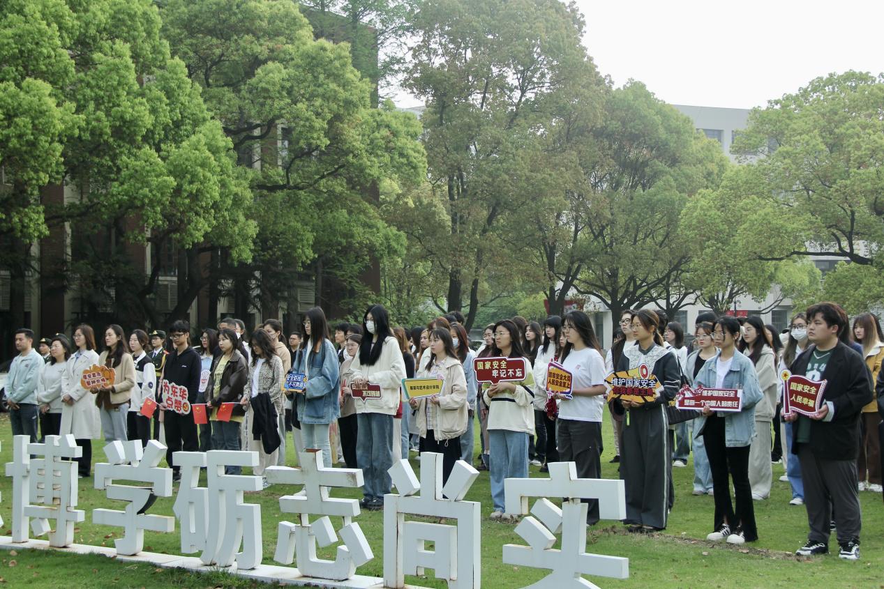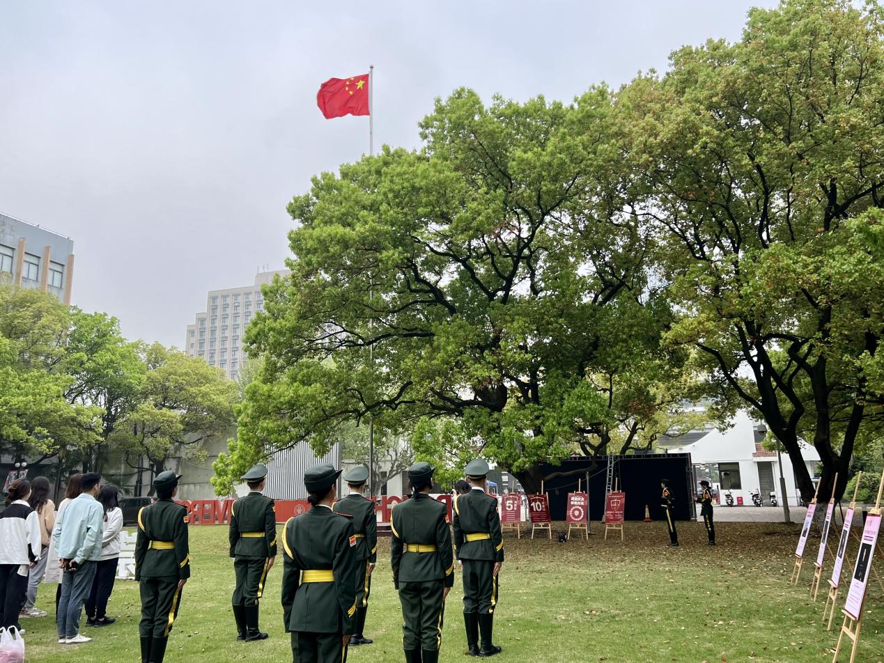 为进一步教育和引导广大师生树立总体国家安全观,培养国家安全意识,提高维护国家安全能力,推动学校国家安全教育深入开展,营造共同维护国家安全的浓厚氛围,JKF 捷克论坛 国旗护卫队党支部以全民国家安全教育日为契机,以总体国家安全观为指导,于4月15日举行“总体国家安全观,创新引领10周年”主题升旗仪式。延安路校区各学院师生代表参加,仪式由国旗护卫队队员表演2201班张晓霏主持。