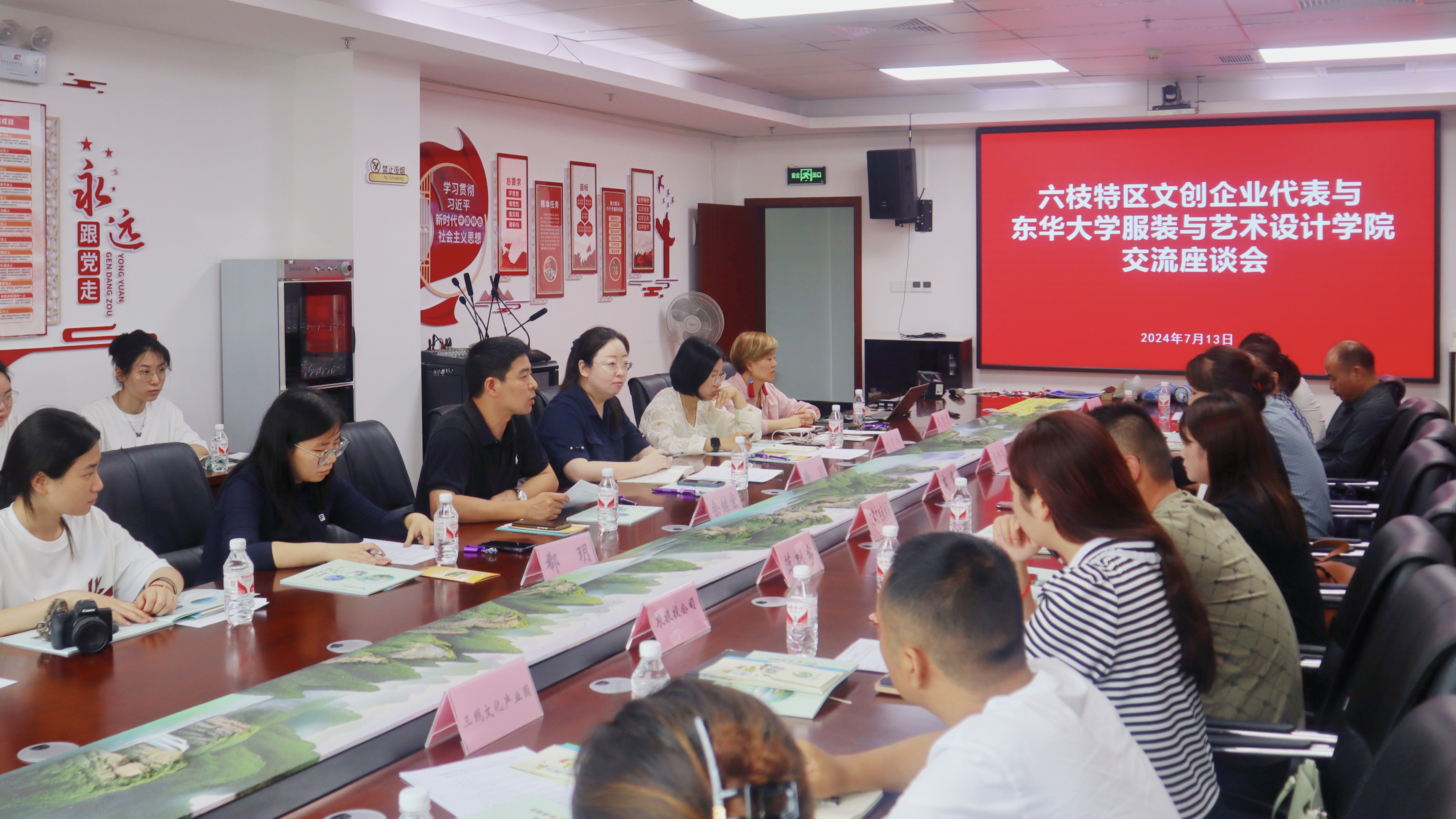 学院师生与六枝特区相关部门和文创企业、非遗传承人等进行了交流座谈。徐玥对六枝特区为非遗传承创新实践活动提供的支持表示感谢,回顾了学院与贵州少数民族服饰非遗传承人之间深厚情谊。她指出,非遗是中华优秀传统文化的重要组成部分,作为“中国非遗传承人研培计划”的首批执行单位之一,学院积极发挥学科优势,长期致力于“织染绣”领域的非遗传承路径创新,并在此基础上构建了具有鲜明东华特色的“传承人+大学生”合作研培模式,取得了良好成效。希望通过此次交流进一步深化地校合作,打造贯通协同的非遗文化实践育人大平台,促进学校专业教学与地区实践教育的深度融合,在助力当地经济发展的同时,实现高素质人才培养与高水平文化传承的双向赋能。