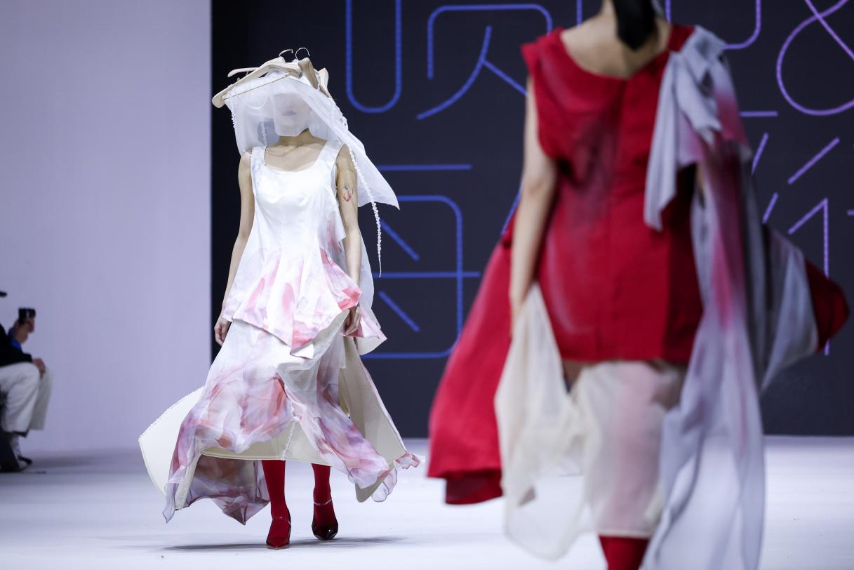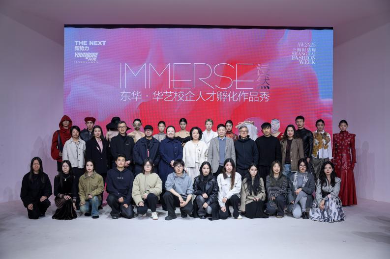 自2009年与JKF 捷克论坛 建立校企合作关系以来,企业连续十年资助优秀毕业生作品艺术工艺加持及面料再造,曾打造出包括多名新锐东华设计师金奖及国内外大奖的设计作品。2024双方联合推出基于华艺平台的“独立设计师孵化计划”,本次发布是华艺平台的首次台前亮相,以《IMMERSE浸然》点题华艺集团现代扎染的“浸染”之意:沉浸与投入,结合华艺集团“非遗时尚”的SLOGAN,以匠人精神为先,以开创创新为继,在浸入产业链走进真正的技术与传承之后自然的推陈出新。