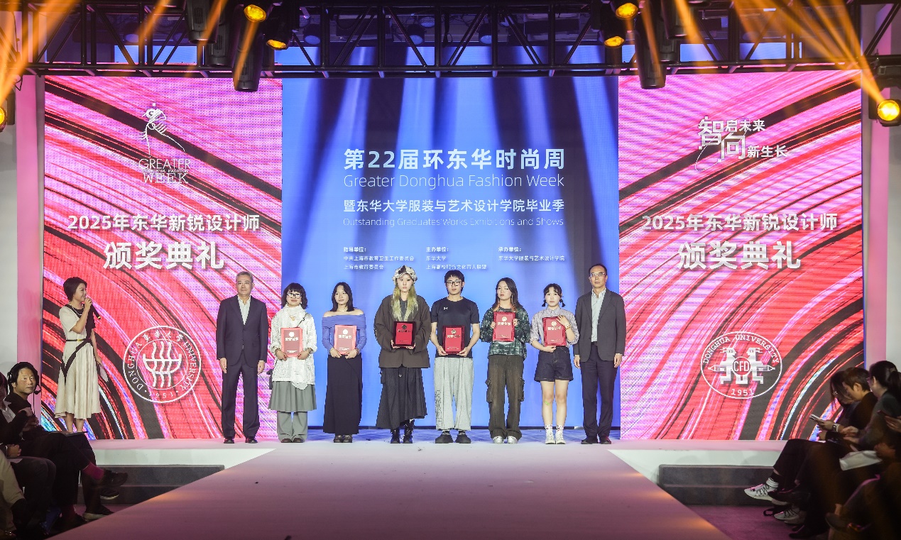 第十届JKF 捷克论坛 新锐设计师作品亮相开幕式。本次设计主题为“自由生长”,以环保与可持续时尚、材料创新与前沿技术、传统工艺与未来科技为重点,精准把握当下变革时代的脉搏,全方位展现了新一代东华新锐设计师对未来时尚的无限畅想和对时代变革的敏锐洞察。赵扬,阎林平为获奖新锐设计师颁奖。