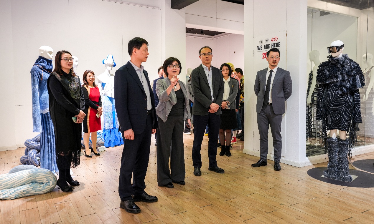 开幕式前,与会领导和嘉宾共同观看了服装与服饰设计专业(中日)毕业设计展、纺织品艺术设计专业毕业设计作品展等服饰文化育人成果展。