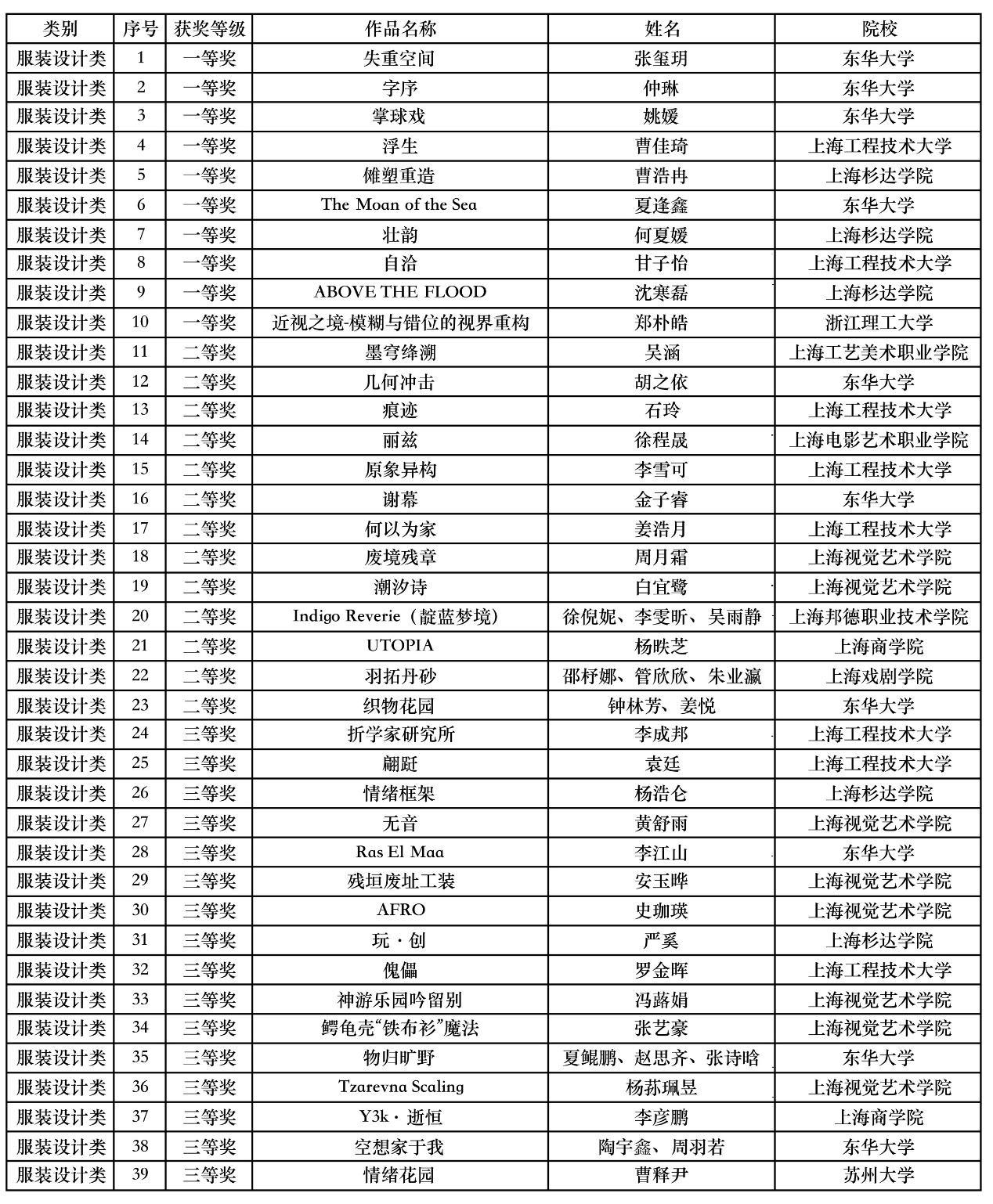 第十届“汇创青春”—上海大学生文化创意作品展示活动—(服装设计类)大赛获奖名单