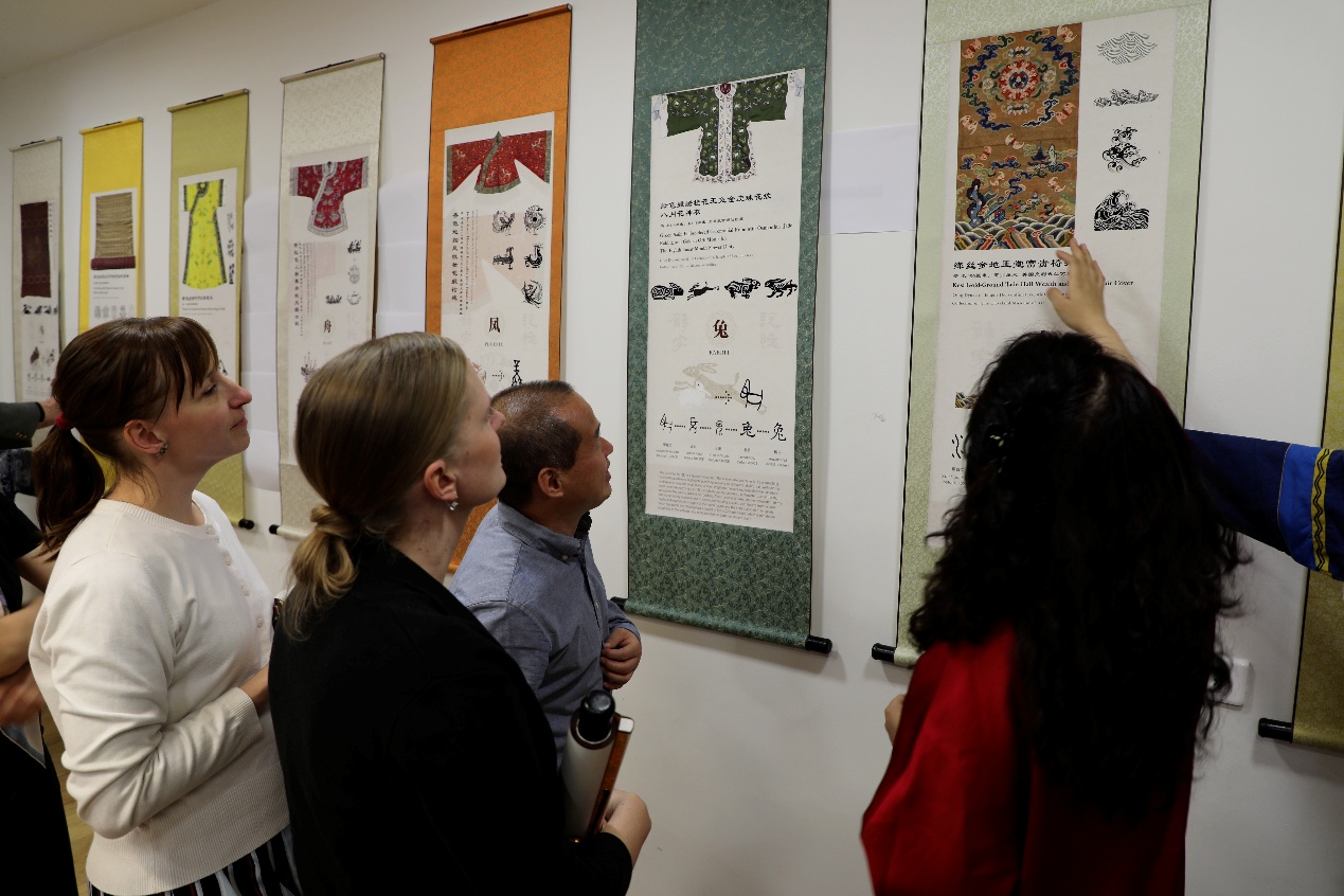 服饰是流动的文明史。此次展览不仅是对中华优秀传统文化的创新表达,更是向世界传递中国“各美其美、美美与共”的文化态度。此次欧洲巡展汇聚了书法、民族服饰与非遗创意设计作品等近百余件珍贵展品,通过实物陈列、数字互动和学术交流等将文字与纹样背后的传统文化和哲学思想娓娓道来:汉字的演变脉络、纹样的象征寓意、非遗织锦的工艺传承……每一处细节都被赋予生动解读,让欧洲观众直观感受“说纹解字”的东方美学智慧。