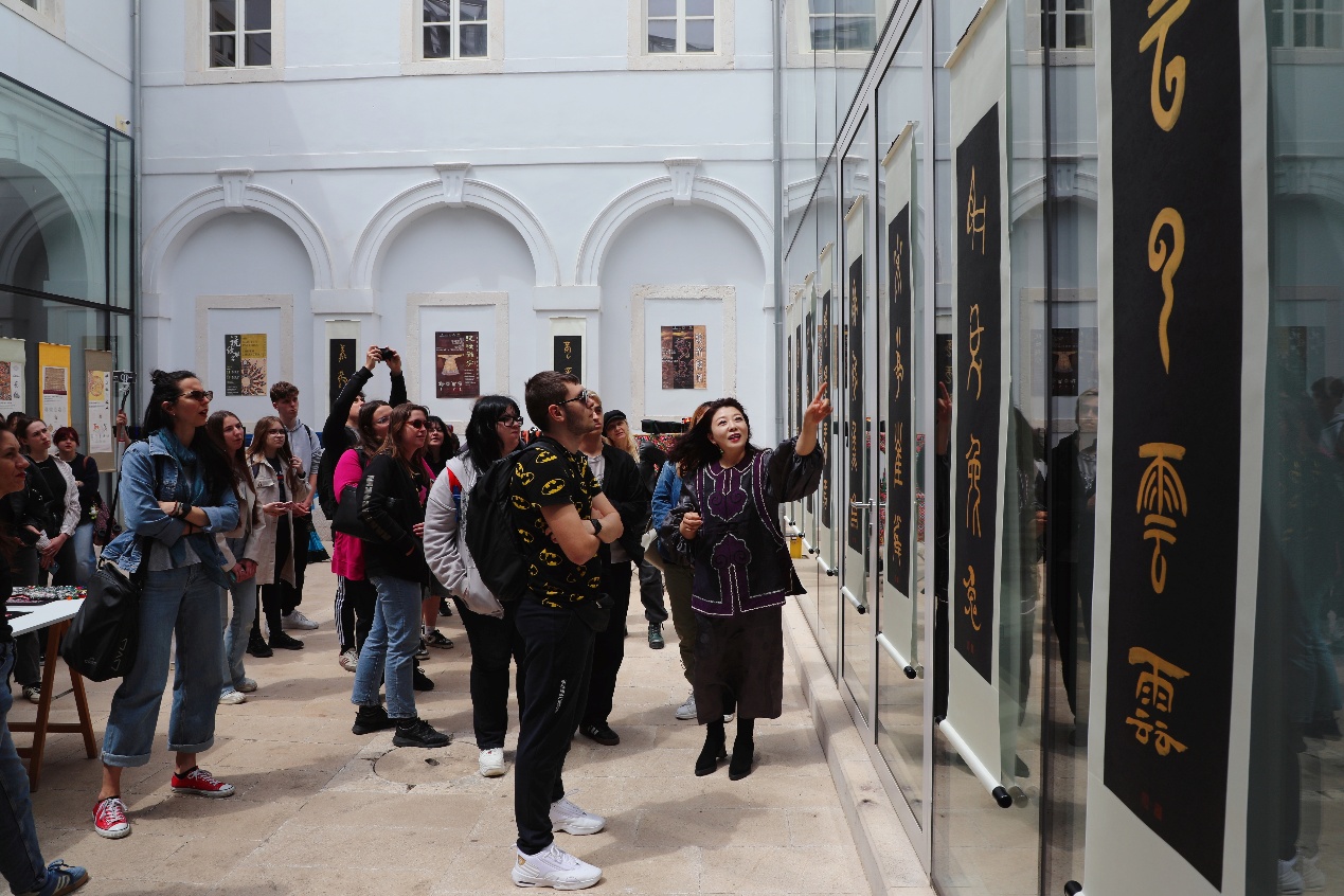 作为教育部语合中心“国际中文日”系列活动,展览创新性地以中国传统服饰中的“文字与纹样”为切入点,通过“文字演变+纹样内涵+非遗技艺+创意成果+学术论坛”五位一体的展陈方式,探索中华纺织服装文化多语言数字化的全球传播方式,向欧洲观众系统阐释中国汉字文化与服饰美学的深厚内涵,打造了一场文字、服饰、纹样和非遗文化等多元交织的时尚美学盛宴。