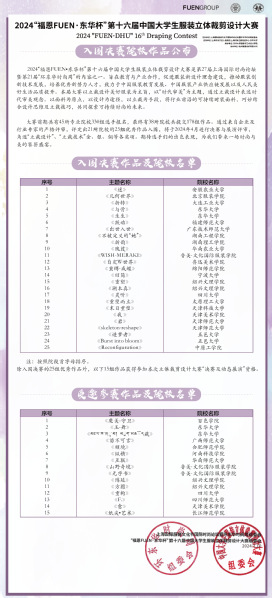 2024“福恩FUEN·东华杯”第十六届中国大学生服装立体裁剪设计大赛入围决赛院校作品公...
